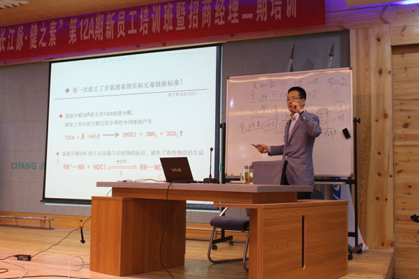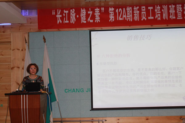 為提升新員工的綜合素質(zhì)及產(chǎn)品知識水平,北京長江脈醫(yī)藥科技有限公司董事長戴彥榛親自授課,深入介紹了企業(yè)的發(fā)展歷史、發(fā)展規(guī)劃及企業(yè)文化,并專門對健之素系列產(chǎn)品進行詳細全面的深入剖析。本次培訓(xùn)會還專門聘請了中國培訓(xùn)大聯(lián)盟兩位金牌講師孫丕智和岳峰先生,就職業(yè)素養(yǎng)訓(xùn)練和市場開發(fā)及管理方面的知識進行專門系統(tǒng)的培訓(xùn)。