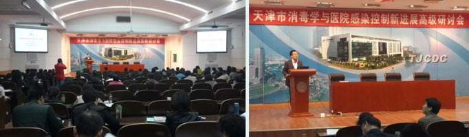 ◆ 本公司與天津市醫(yī)院協(xié)會醫(yī)院感染管理分會聯(lián)合舉辦“醫(yī)院消毒新理念、新方法、新進(jìn)展暨重點部門感控措施培訓(xùn)班” ,董事長戴彥榛作《醫(yī)院消毒技術(shù)的國內(nèi)外發(fā)展進(jìn)程》的報告。